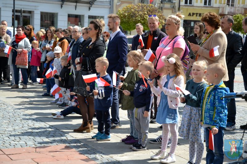 Uroczystości miejskie związane z Dniem Flagi RP, rozpoczęły się od uroczystego wciągnięcia flagi na masz oraz odśpiewania Mazurka Dąbrowskiego.