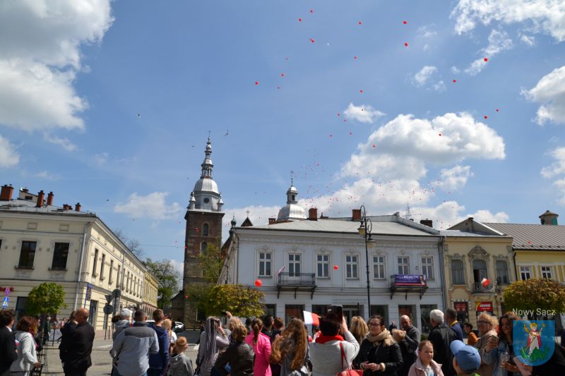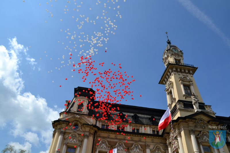 W Nowym Sączu tysiąc biało-czerwonych balonów pofrunęło w niebo z okazji Dnia Flagi Rzeczpospolitej Polskiej. Wiceprezydent miasta Magdalena Majka i dyrektorzy wydziałów Urzędu Miasta: Edukacji i Wychowania Małgorzata Belska oraz Komunikacji Społecznej i Kultury Marcin Poręba, rozdali też nowosądeczanom kilkaset chorągiewek.
