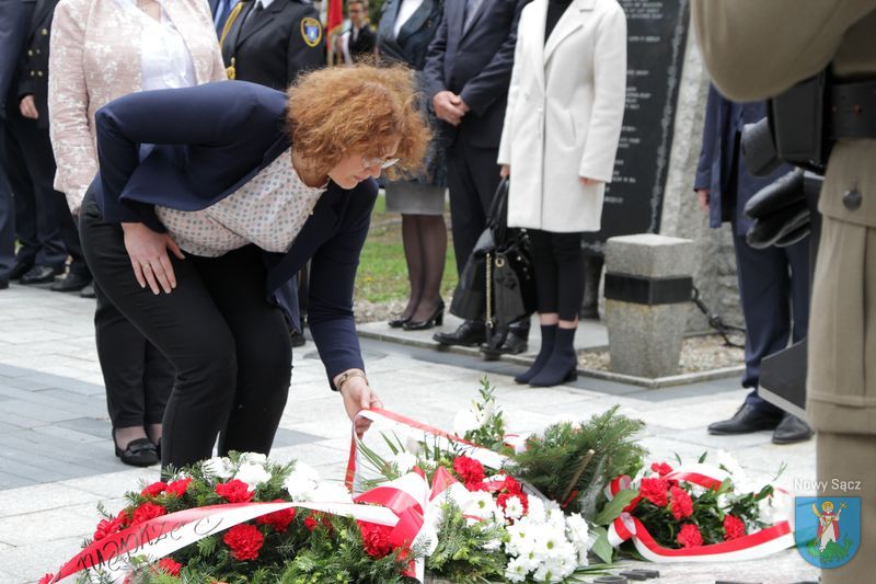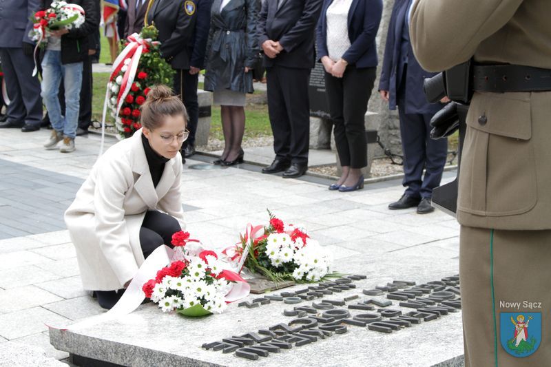 Kulminacyjnym punktem uroczystości było złożenie wiązanek kwiatów pod „Sądecką Pietą” przez delegacje oficjalne, kombatantów i młodzież. W imieniu władz miasta kwiaty złożyli wiceprezydent Magdalena Majka wraz z dyrektorami wydziałów: Komunikacji Społecznej i Kultury Marcinem Porębą, Bezpieczeństwa i Kontroli Wewnętrznej Mirosławem Świstem, Zarządzania Kryzysowego Krzysztofem Setlakiem i Komendantem Straży Miejskiej Ryszardem Wasilukiem.