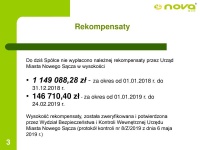 Urząd Miasta Nowego Sącza w okresie od 01 stycznia 2018 r. nadal za każdy miesiąc realizacji zadania, uiszcza NOVA Sp. z o.o. kwotę 502 500 zł netto, na podstawie wystawianych faktur, tytułem rekompensaty w związku ze świadczeniem przez Spółkę usługi na podstawie Zarządzenia Wewnętrznego nr 83/2017 Prezydenta Miasta Nowego Sącza z dnia 5 września 2017 r.