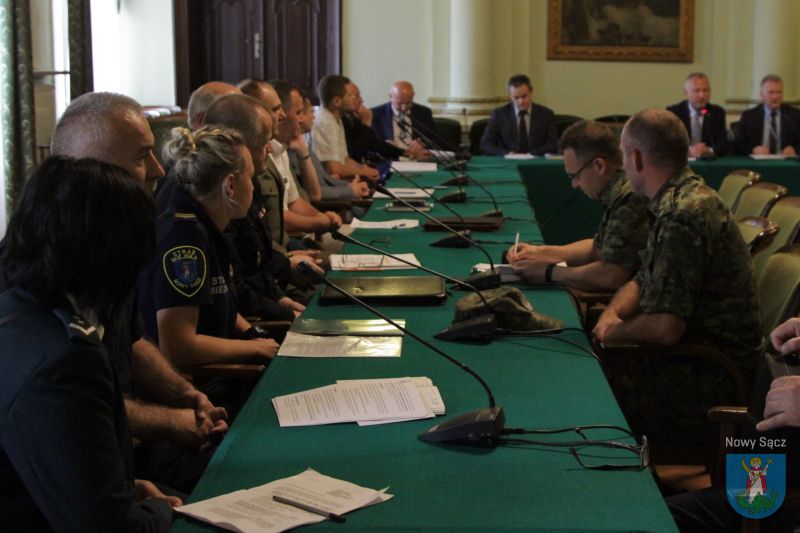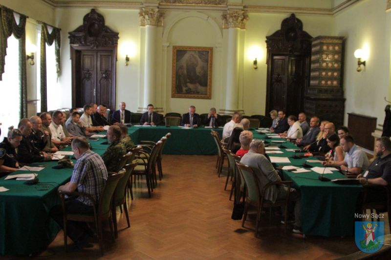 Dzisiaj (17 czerwca) w sali reprezentacyjnej nowosądeckiego ratusza odbyło się posiedzenie członków Miejskiego Zespołu Zarządzania Kryzysowego. Zgromadzonych na spotkaniu powitał Prezydent Miasta Nowego Sącza Ludomir Handzel oraz dyrektor Wydziału Zarządzenia Kryzysowego Krzysztof Setlak, po czym przedstawiono plan pracy w kontekście organizacji w naszym mieście akcji Bezpieczne Wakacje 2019.