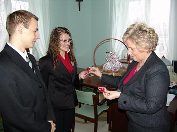 Młodzież z Zespołu Szkół nr 3 w Nowym Sączu podarowała prezydentowi miasta duży kosz walentynkowy, wypełniony pachnącymi pączkami i ozdobiony mnóstwem czerwonych serc. „Jest to nietypowy kosz, częściowo walentynkowy, częściowo tłustoczwartkowy” – z uśmiechem na twarzy młodzi ludzie żartowali z zastępcą prezydenta miasta Bożeną Jawor. Pani wiceprezydent była mile zaskoczona tak niespodziewaną wizytą. Każdy przedstawiciel sądeckiej młodzieży otrzymał od pani wiceprezydent słodką walentynkę w kształcie serca.