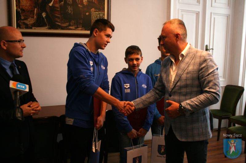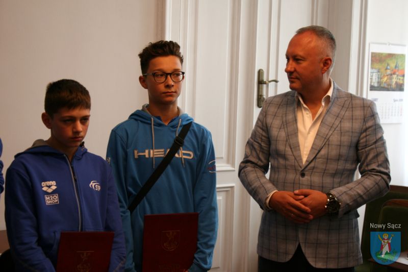 Prezydent Ludomir Handzel spotkał się dziś (12 lipca) z sądeckim kajakarzem, wicemistrzem Polski Michałem Pasiutem oraz mistrzem Polski w pływaniu Filipem Mordarskim, Wojciechem Nowakiem i Piotrem Sadowym, zawodnikami Miejskiego Klubu Sportowego STP. Prezydent pogratulował sportowcom znakomitych wyników i wręczył im listy gratulacyjne oraz upominki.