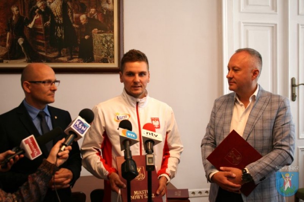 - Dziękuję za zaproszenie i cieszę się że władze miasta pamiętają o sportowcach, którzy wywodzą się z Nowego Sącza. Przede mną dwa miesiące bardzo ciężkich przygotowań do dalszej części sezonu, która obejmuje dwa Puchary Świata i Mistrzostwa Świata w Hiszpania. Jestem dobrej myśli i będę chciał się zaprezentować z jak najlepszej strony - powiedział Michał Pasiut, wicemistrz Polski i zdobywca II miejsca w Pucharze Świata w kajakarstwie.