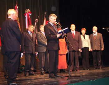Przewodniczący Rady Miasta Piotr Lachowicz wręczył na ręce Jana Firsta Tarczę Herbową – „Zasłużony dla Miasta Nowego Sącza” przyznaną sądeckiemu Cechowi przez radnych Rady Miasta Nowego Sącza.