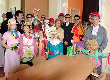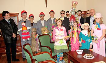 Przebrani w kolorowe stroje, z tradycyjnymi "Marzannami" uczniowie z Zespołu Szkół Podstawowo - Gimnazjalych nr 2 odwiedzili władze miasta.