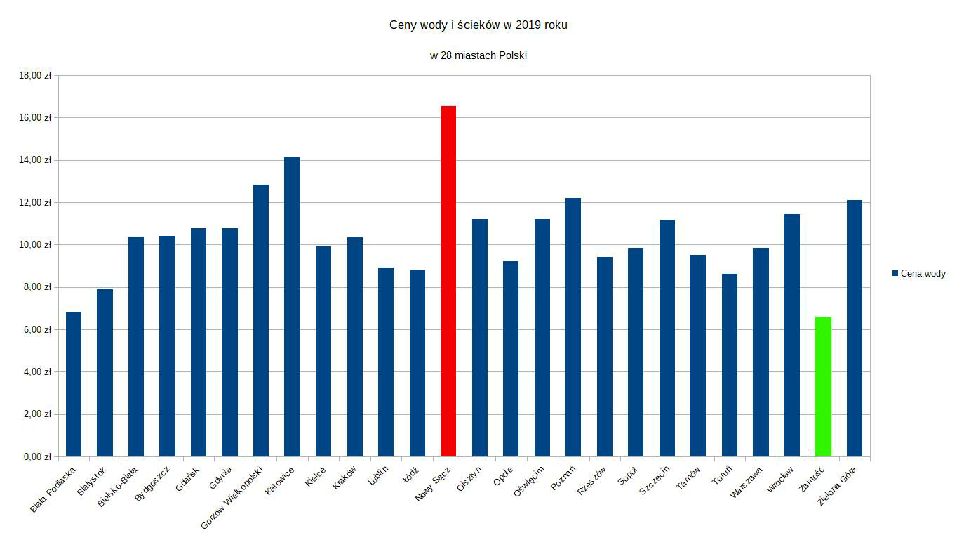 Podczas briefingu prasowe zostało także zaprezentowane porównanie cen wody i ścieków w 2019 roku 28 miastach w Polsce.