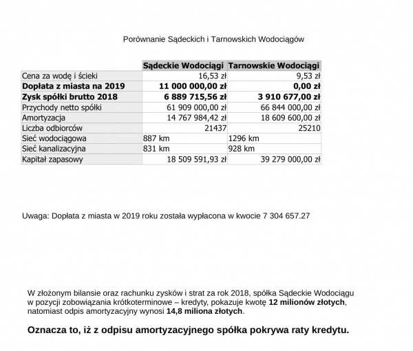Podczas briefingu prasowego prezydent Ludomir Handzel podkreślał, że zrobi wszystko, by miasto odzyskało kontrolę nad Spółką. – Nie jest celem spółki komunalnej wypracowywanie zysku, a dostarczanie mieszkańcom usług komunalnych w jak najniższej cenie. Mieszkańcy nie mają żadnego przedstawiciela w radzie nadzorczej i zarządzie Spółki i nie jesteśmy w stanie zorientować się, dlaczego takie działania są podejmowane. Liczby mówią same za siebie i wystarczy nam niższy zysk Sądeckich Wodociągów i niższe ceny za wodę i ścieki. Takie jest zamierzenie moje jako prezydenta i rady miasta, która podjęła takie decyzje.