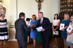 - Bardzo dobrze, że młodzi ludzie podnoszą swoje kwalifikacje i się rozwijają – mówił prezydent Ludomir Handzel. – Zdaję sobie sprawę z roli jaką nauczyciele pełnią w procesie dydaktycznym i wychowawczym. To od pedagoga zależy, czy dzieci lubią poszczególne przedmioty. Jeżeli ktoś lubi dany przedmiot to chce się w nim rozwijać, a czasem wiązać z tym również swoją karierę zawodową. Chcę podkreślić Państwu, że to co macie w głowie i przekazujecie dzieciom i młodzieży, tego wam nikt nie odbierze. Dziękuję, że przynajmniej w tak symboliczny sposób mogę uhonorować Państwa pracę.