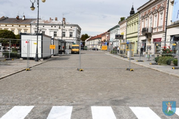 W związku z kontynuacją robót na Rynku przez Sądeckie Wodociągi zamknięty dla ruchu będzie jeden pas jezdni Rynku na odcinku od ul. Kazimierza Wielkiego do ul. Dunajewskiego (pierzeja zachodnia). Ruch pojazdów samochodowych będzie się odbywał jednym pasem (wewnętrznym) w kierunku ul. Dunajewskiego