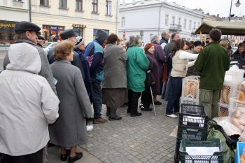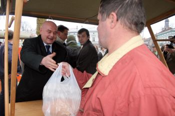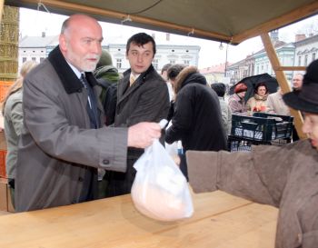 „Zwyczaj dzielenia się jajkiem, w niedzielny poranek- to tradycja pielęgnowana w wielu sądeckich domach. Zatem mam nadzieję, że świąteczne życzenia trafią wraz z tymi produktami do wielu rodzin. Po za tym chcemy, aby święta upłynęły wszystkim szczęśliwie, aby nikt nie zasiadł do pustego stołu. Stąd oprócz innych akcji charytatywnych, w których uczestniczy miasto, ta dzisiejsza, na sądeckim rynku”- mówił prezydent Ryszard Nowak rozdając mieszkańcom świąteczne specjały.