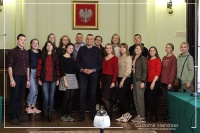 O szczegółach architektonicznych sali i ratusza opowiedział sekretarz miasta Piotr Lachowicz. Przy okazji przybliżył gościom historie i specyfikę naszego miasta, od lokacji w 1292 roku aż do czasów współczesnych. Goście interesowali się funkcjonowaniem Urzędu miasta (na przykład kontakty z obywatelami) i problemami miasta. Po części studyjnej goście otrzymali pamiątkowe gadżety.