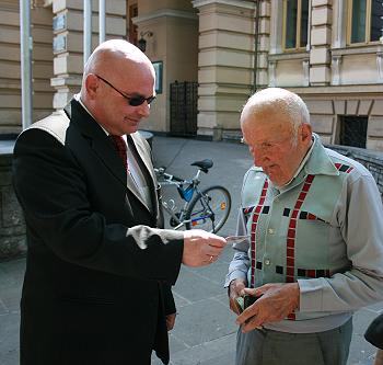 Prezydent Ryszard Nowak z najstarszym uczestnikiem rajdu