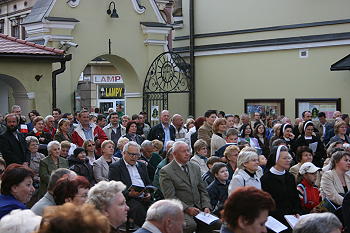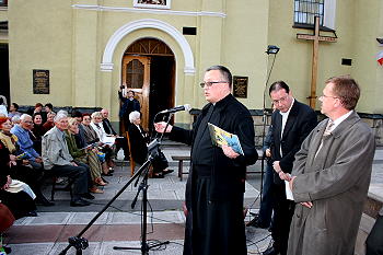 Ryszardowi Nowakowi towarzyszyła pani wiceprezydent Bożena Jawor. Drukarnia BAAD dostarczyła wszystkim chętnym śpiewniki z tekstami pieśni narodowych i około godziny 19.00 rozpoczęło się wspólne muzykowanie. Małgorzata Grybel, która opowiadała o historii wykonywanych pieśni, czuwała także nad przebiegiem koncertu, łowiąc bystrym okiem talenty wokalne wśród tłumnie przybyłych na imprezę mieszkańców miasta. Dzięki temu, chór prowadzących koncert talentów śpiewaczych, powiększał się z minuty na minutę.