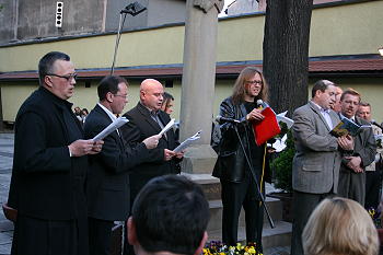 W trakcie koncertu wykonywano pieśni patriotyczne i maryjne. Ponieważ miesiąc maj wiąże się nierozerwalnie z majówkami, miejsce centralne podczas patriotycznego śpiewania zajmowała figura Marii z Dzieciątkiem, która góruje nad dziedzińcem klasztoru Ojców Jezuitów.
