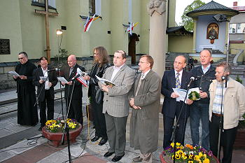 Nad stroną muzyczną i czystością śpiewu czuwał Tomasz Wolak, znany sądecki organista i wokalista. W pierwszej linii chóru nie mogło zabraknąć sponsorów i organizatorów patriotycznego śpiewania. Prym trzymał Robert Andrzej Ślusarek – dyrektor Muzeum Okręgowego w Nowym Sączu, a zarazem świetny organista.