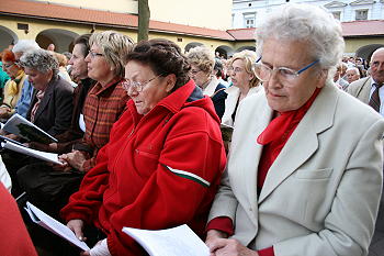 Wywoływani do chóru sądeczanie opowiadali o swoich ulubionych pieśniach patriotycznych i maryjnych, a niektórzy odważyli się także na solowy występ.