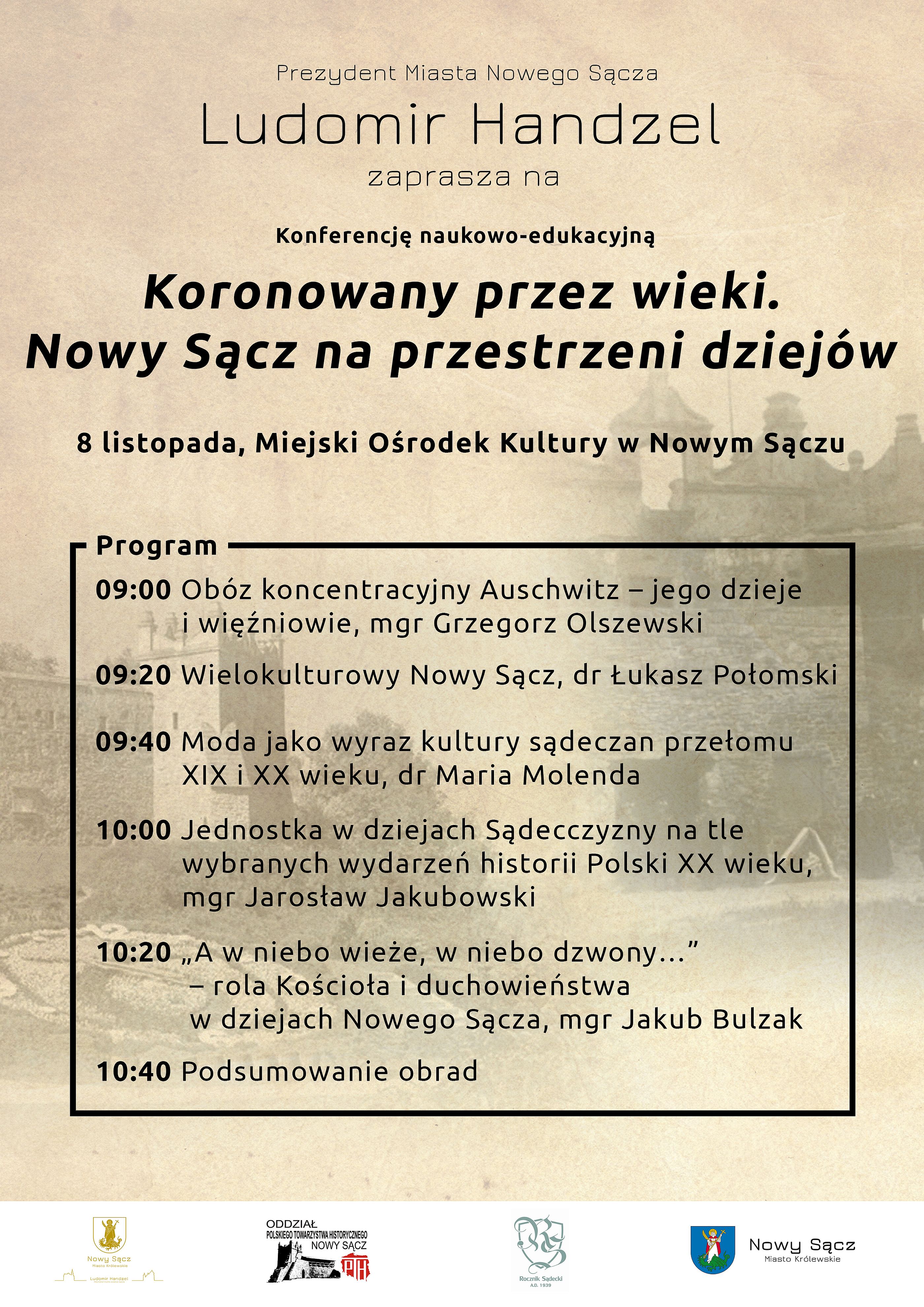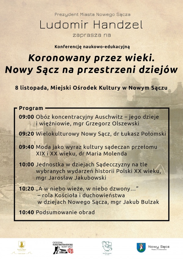 Rozpoczynają się uroczystości związane z 727. rocznicą lokacji miasta Nowego Sącza. Obchody rocznicowe inauguruje konferencja naukowo - edukacyjna "Koronowany przez wieki. Nowy Sącz na przestrzeni dziejów" w Miejskim Ośrodku Kultury (8 listopada, godz. 9:00). Na uroczystości zaprasza prezydent miasta Ludomir Handzel. Szczegóły na afiszu.