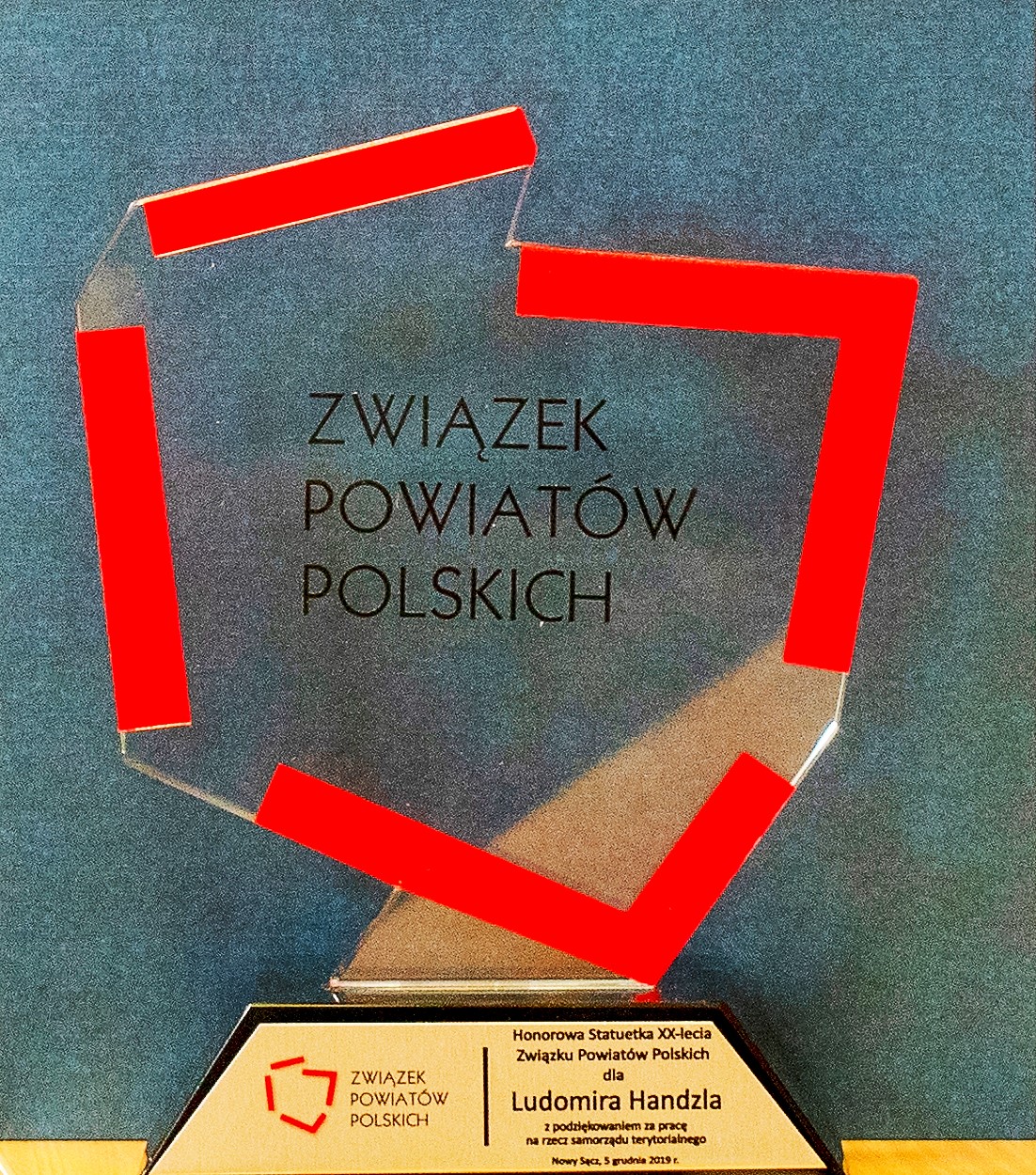 Przedstawiciele Związku Powiatów Polskich uhonorowali prezydenta Ludomira Handzla wyróżnieniem. Honorowa Statuetka XX-lecia Związku Powiatów Polskich, to wyraz podziękowania dla prezydenta za pracę na rzecz samorządu terytorialnego. Podczas posiedzenia zarządu w sądeckim Ratuszu, nagrodę wręczył prezes ZPP Andrzej Płonka.