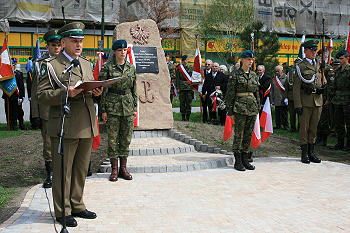 Odsłonięcia pomnika dokonała pani wiceprezydent - Bożena Jawor. Ojciec Jezuita - Robert Więcek poświęcił monument. Nad przebiegiem uroczystości czuwał Janusz Michalik z Miejskiego Ośrodka Kultury.
