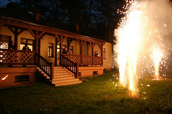 Po godzinie 21.00, profesor Szarek na werandzie prezentował archiwalne filmy z działalności „Małej Galerii”.