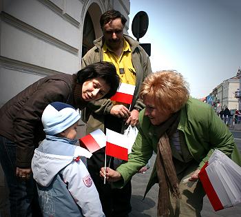 W dniu dzisiejszym symbole Flagi Narodowej rozdawali mieszkańcom miasta: zastępcy prezydenta i harcerze. Wiceprezydent Bożena Jawor spotkała się z mieszkańcami miasta, na ulicy Jagiellońskiej. Sądeczanie z wielką życzliwością i zainteresowaniem podchodzili do pani wiceprezydent, kilka osób skorzystało z okazji by podziękować władzom miasta za pielęgnowanie polskich tradycji.