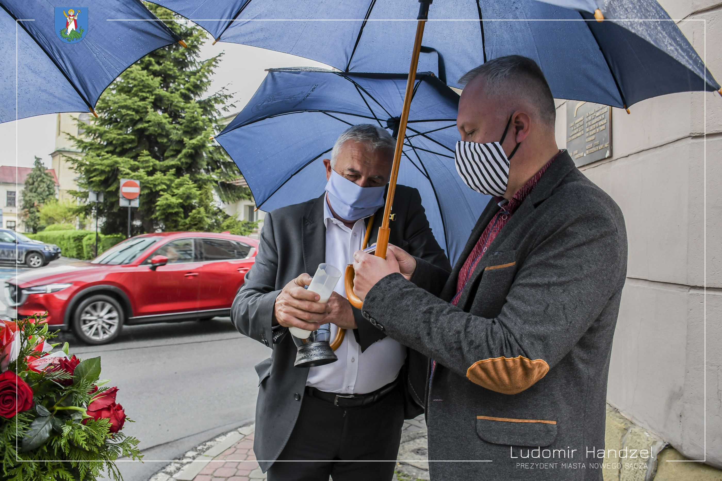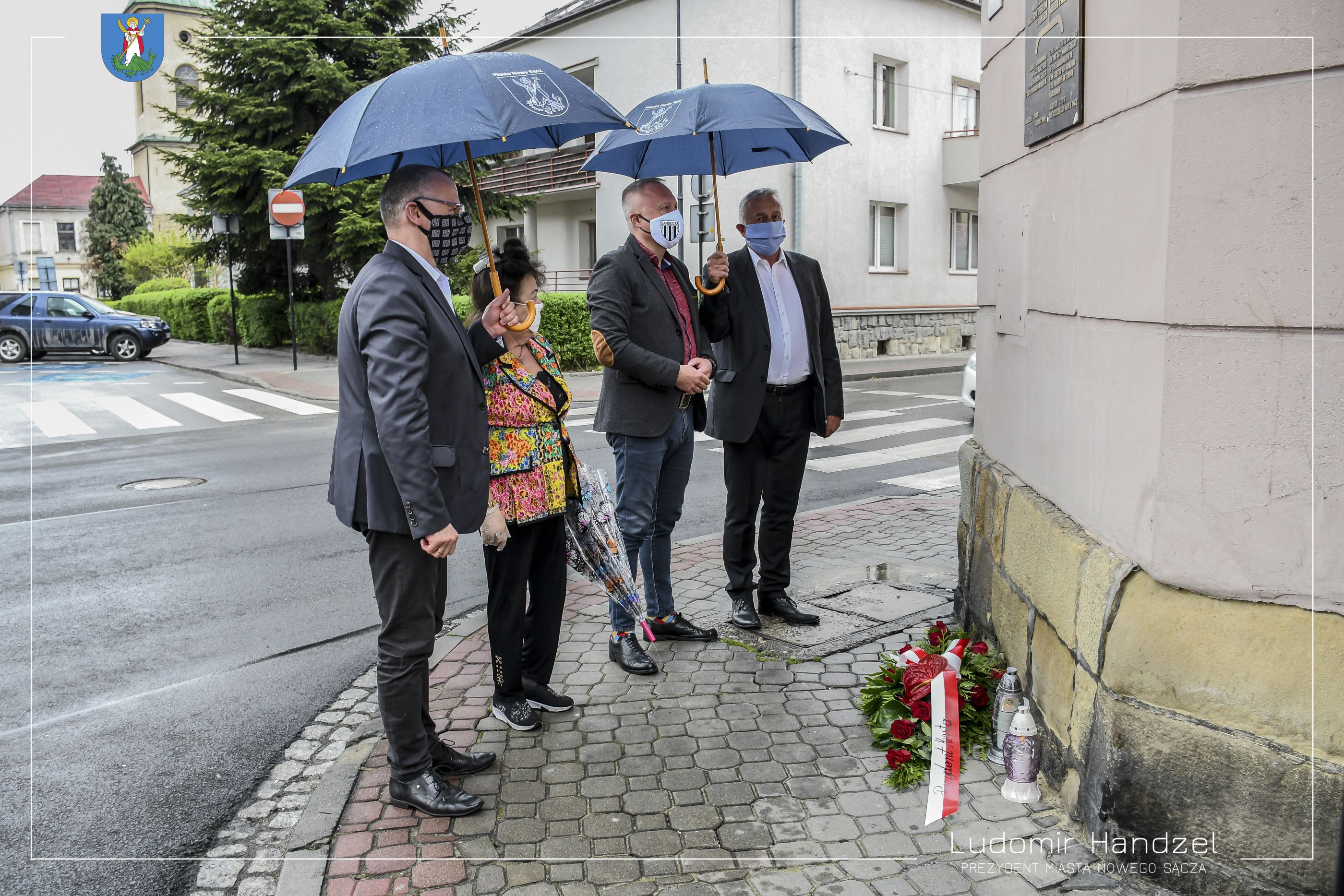 Prezydent Miasta Nowego Sącza Ludomir Handzel wraz z Dyrektorem Wydziału Komunikacji Społecznej i Kultury dr. Marcinem Porębą złożyli kwiaty pod tablicą upamiętniającą śmierć Sadeckich Żydów którzy zginęli z rąk Niemców w roku 1942.