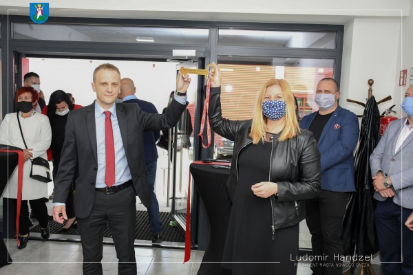Prezydent Ludomir Handzel przekazał symboliczny klucz do budynku dyrektor Wydziału Architektury i Urbanistyki Jolancie Polańskiej oraz dyrektorowi Sądeckiego Urzędu Pracy Jarosławowi Glińskiemu.