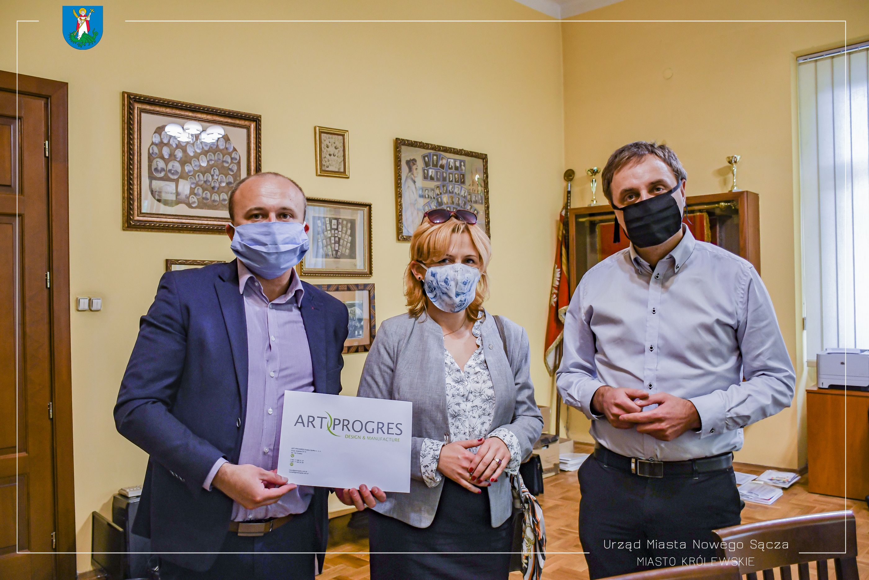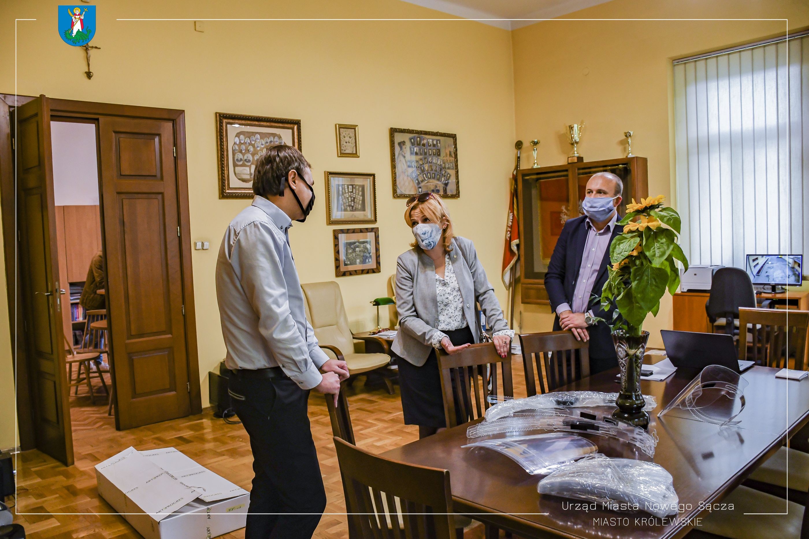 Zastępca prezydenta Magdalena Majka wraz z radnym Grzegorzem Ledzińskim przekazali do nowosądeckich szkół 300 przyłbic ochronnych, które miasto otrzymało od firmy Art-Progres.