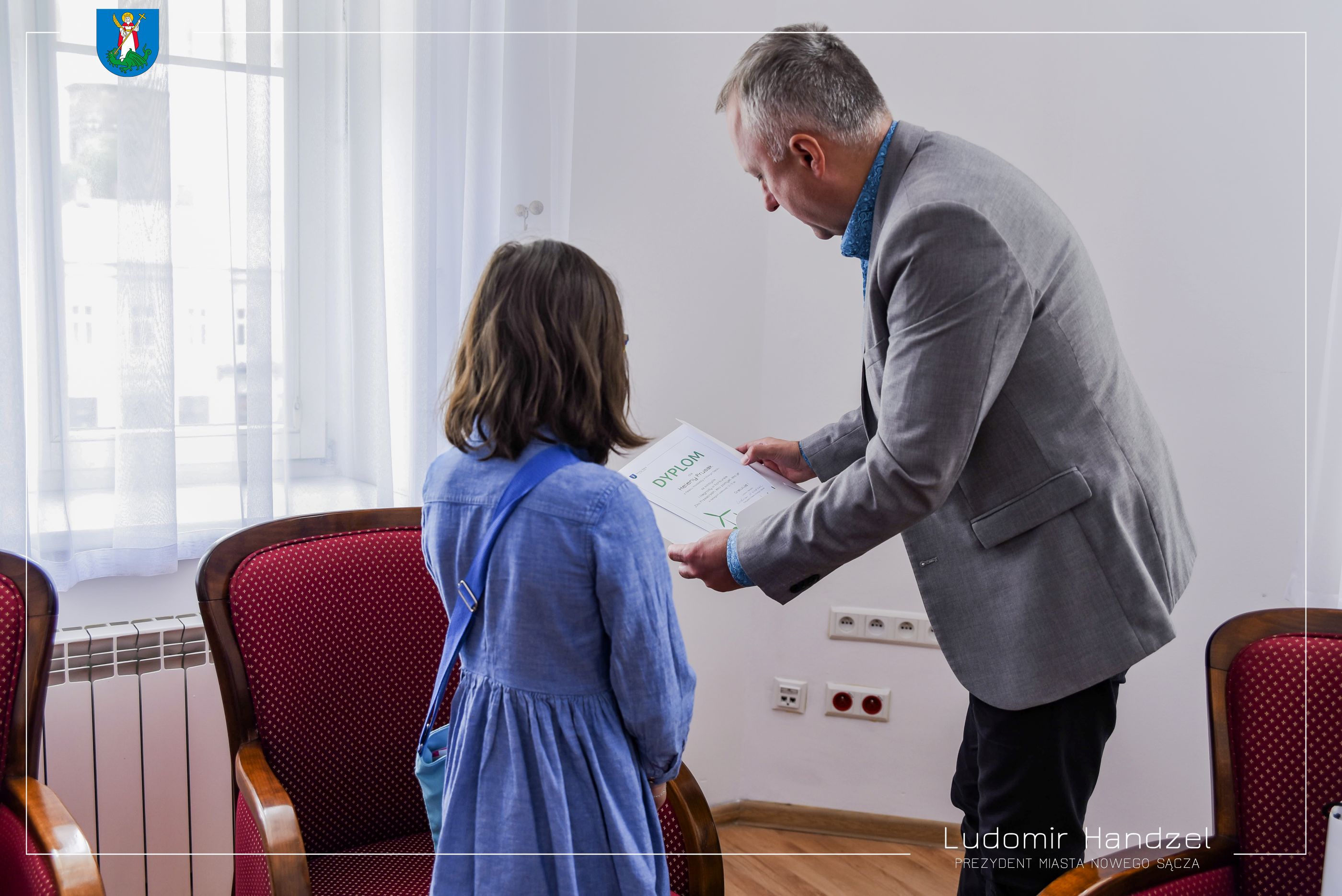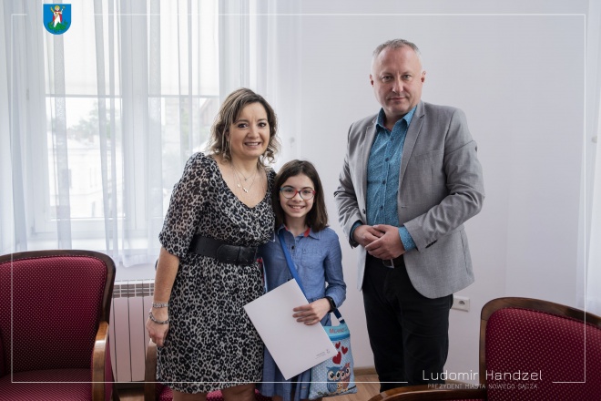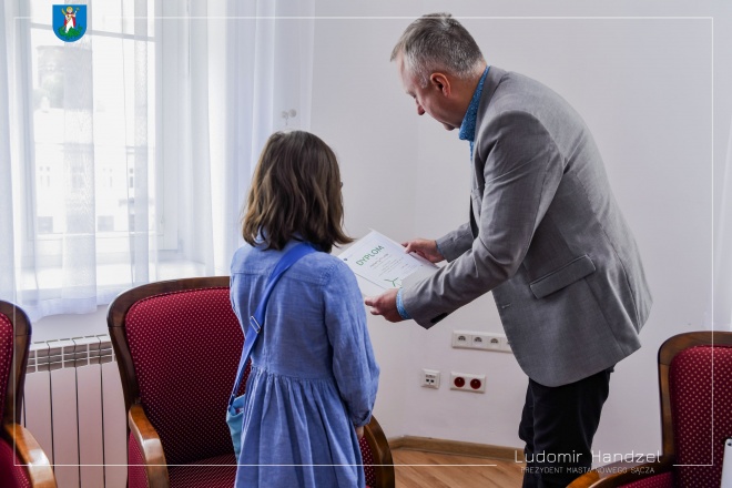 Prezydent Ludomir Handzel pogratulował i wręczył dyplom oraz nagrodę Helenie Prusak, laureatce konkursu „Eko Przestrzeń, eko pomysł, eko ja.' Młoda Nowosądeczanka zdobyła pierwszą nagrodę w kategorii wiekowej 12-15 – „Czas na łąkę”.