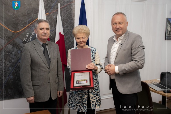 Prezydent Ludomir Handzel gościł w gabinecie dyrektor Sądeckiego Pogotowia Ratunkowego Bożene Hudzik i zastępcę dyrektora Janusz Geroch.
