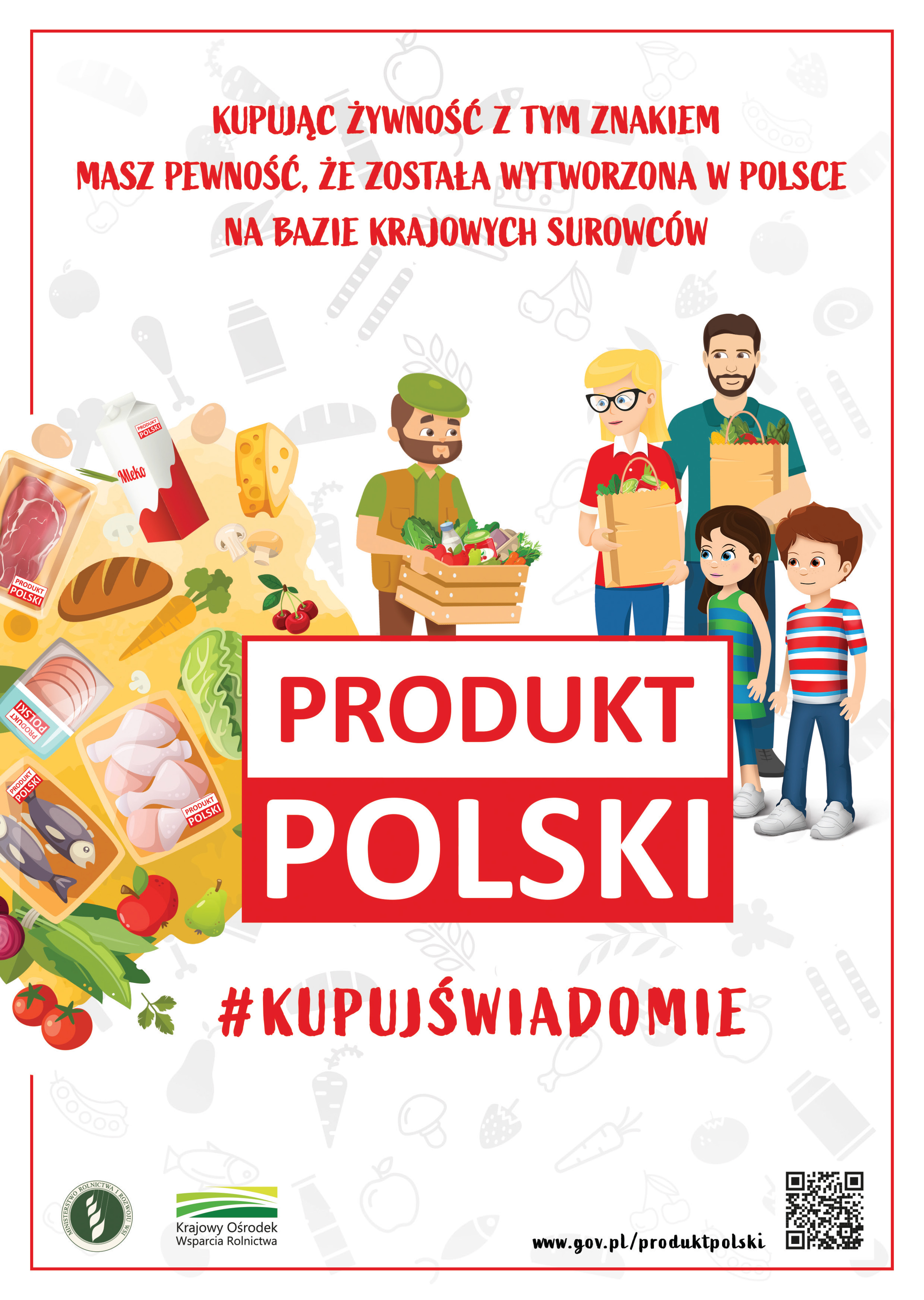 Kupuj świadomie PRODUKT POLSKI – Twój wybór ma ogromne znaczenie! Kupując produkty krajowego pochodzenia wspierasz przedsiębiorców, rolników i firmy działające na terenie Polski, wspierasz budżety samorządów i dajesz wyraz nowoczesnego patriotyzmu. Jak pisze Minister Rolnictwa i Rozwoju Wsi Jan Krzysztof Ardanowski w apelu inaugurującym kampanię Kupuj świadomie PRODUKT POLSKI: „Z punktu widzenia przyszłości polskiego rolnictwa oraz gospodarki to priorytet i nasz wspólny cel i społeczny obowiązek”.