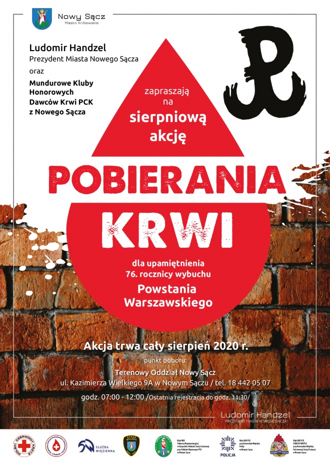 Prezydent Ludomir Handzel zaprasza Państwa do dzielenia się bezcennym darem jakim jest krew. Akcja trwa przez cały miesiąc sierpień, szczegóły na plakacie.
