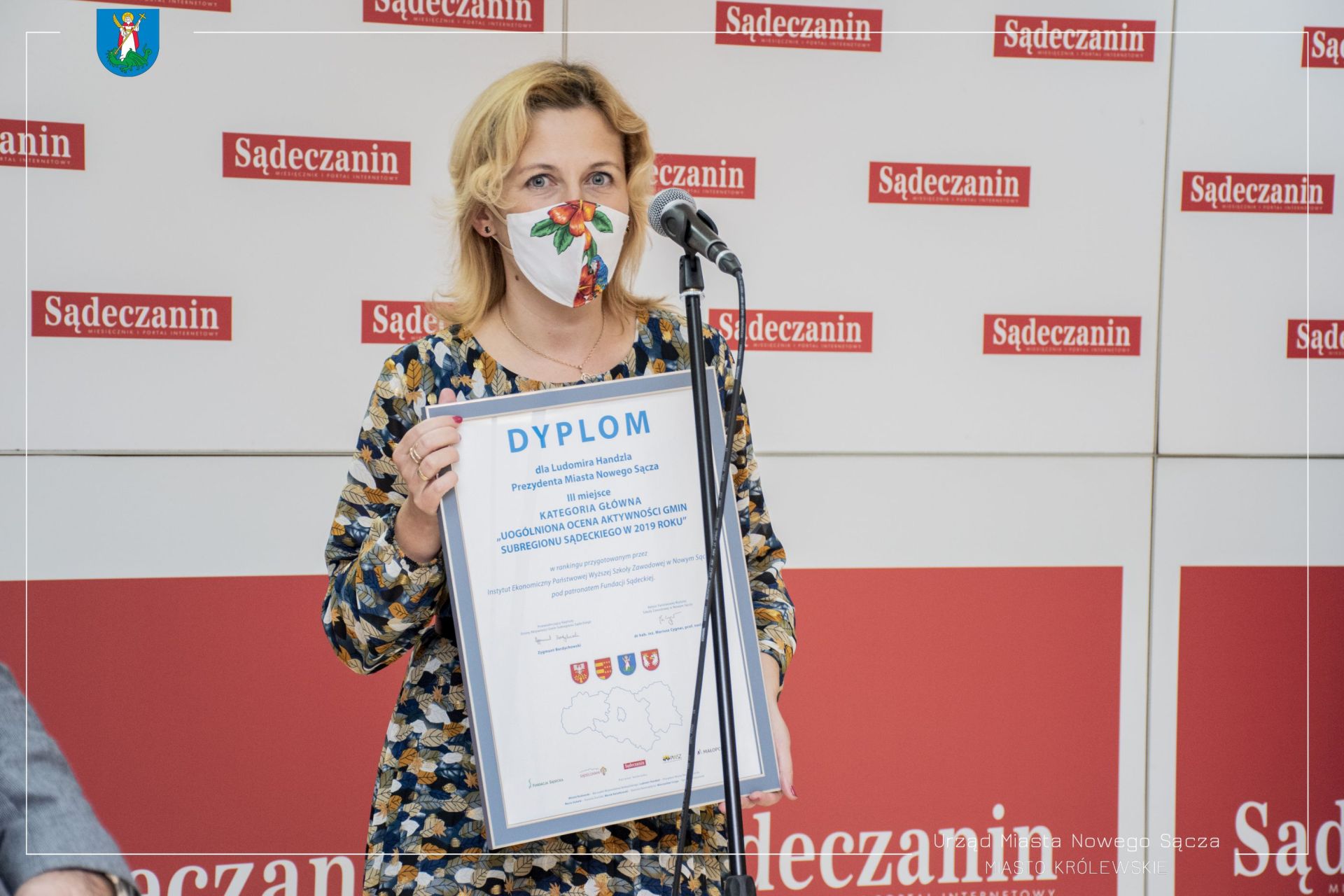 W imieniu prezydenta Nowego Sącza Ludomira Handzla nagrodę dla miasta odebrała zastępca prezydenta, Magdalena Majka.
