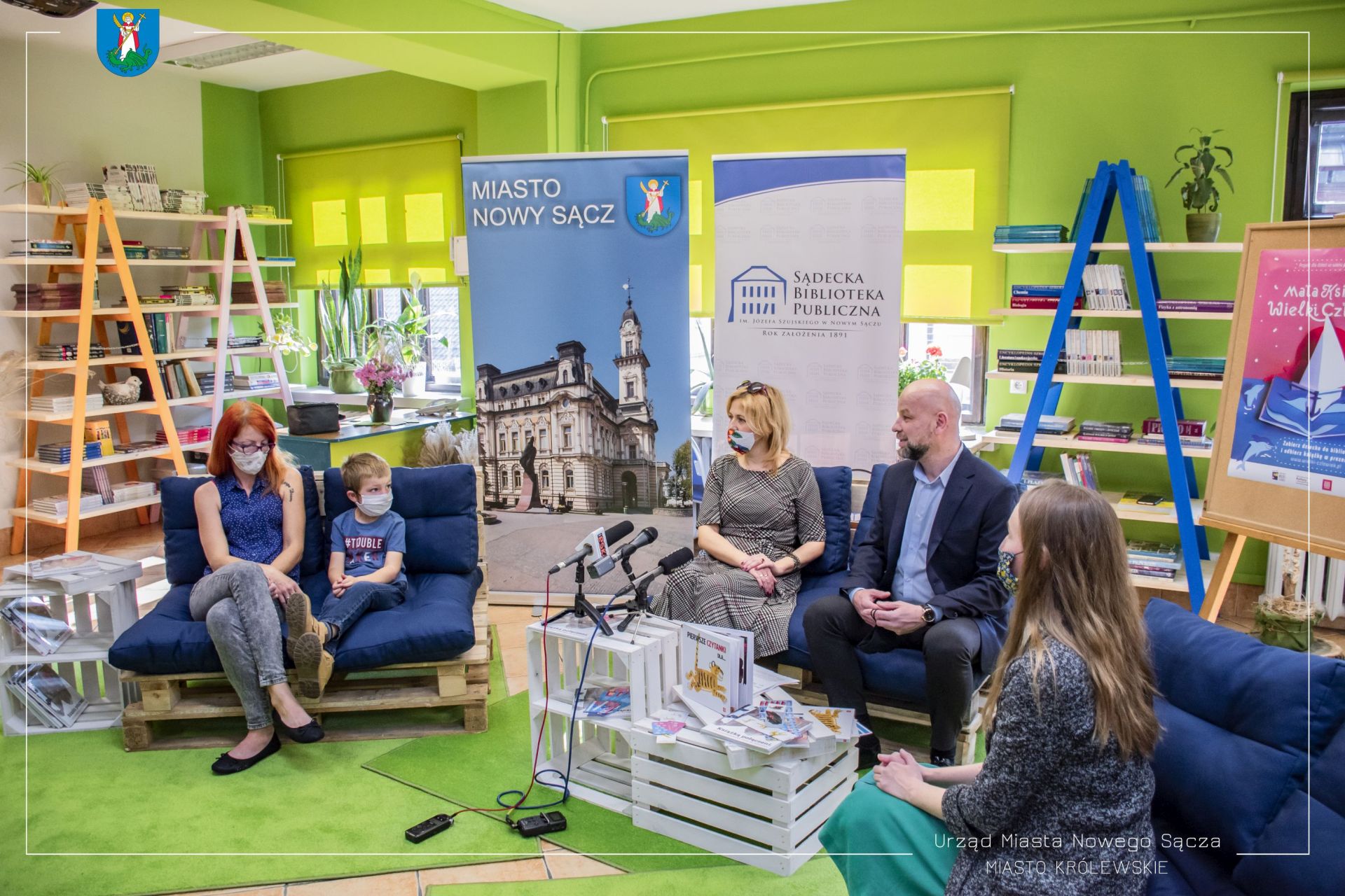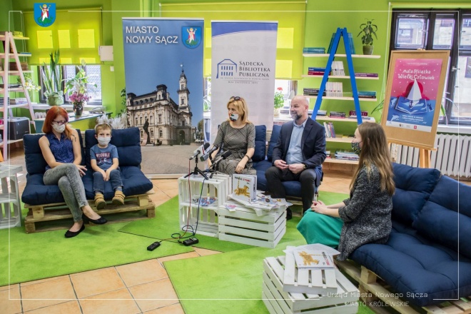 Dziś w Sądeckiej Bibliotece Publicznej im. Józefa Szujskiego w Nowym Sączu przy ul. Lwowskiej 21 na Oddziale dla Dzieci i Młodzieży odbyła się konferencja prasowa z udziałem Zastępcy Prezydenta Miasta Nowego Sącza Magdaleny Majki, dyrektora Sądeckiej Biblioteki Publicznej Marka Rylewicza oraz koordynatorki akcji w SBP - Anny Kosowskiej - Zgrzeblak. Podczas spotkania przybliżone zostały założenia projektu realizowanego przez Instytut Książki „Mała książka – wielki człowiek”