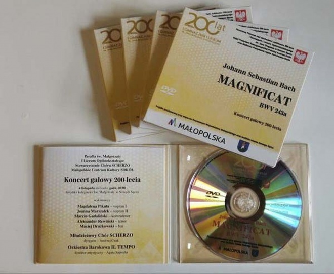 Stowarzyszenie otrzymało również dofinansowanie wydania pierwszej płyty DVD zespołu z nagraniem koncertu jubileuszowego 200-lecia I Gimnazjum i Liceum w Nowym Sączu. Program obejmował wykonanie kompozycji Jana Sebastiana Bacha MAGNIFICAT BWV234a w wykonaniu Młodzieżowego Chóru SCHERZO z towarzyszeniem orkiestry barokowej IL TEMPO z Warszawy, grającej na instrumentach historycznych. Wśród solistów znalazły się m.in. dwie absolwentki chóru i liceum: Magdalena Pikuła i Joanna Marszałek. Koncert odbył się 4 listopada 2018 r. w bazylice kolegiackiej Św. Małgorzaty, w ramach obchodów Jubileuszu 200-lecia I Gimnazjum i Liceum w Nowym.