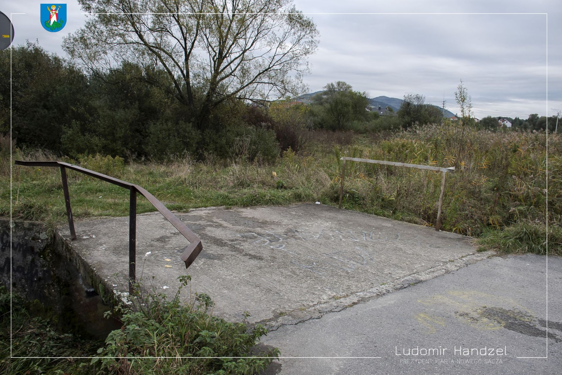 kładce na potoku Łęg przy szkole w Piątkowej