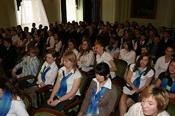 W sali reprezentacyjnej sądeckiego ratusza obradowała VII Gimnazjalna Rada Miasta. Jak przystało na obrady radnych, za stołem prezydialnym zasiadł przewodniczący wraz ze swoimi zastępcami. Wiceprzewodniczący Rady Miasta – Stefan Chomoncik przekazał w ręce gimnazjalistów insygnia władzy – ozdobny łańcuch przewodniczącego Rady Miasta i rozpoczęto obrady.
