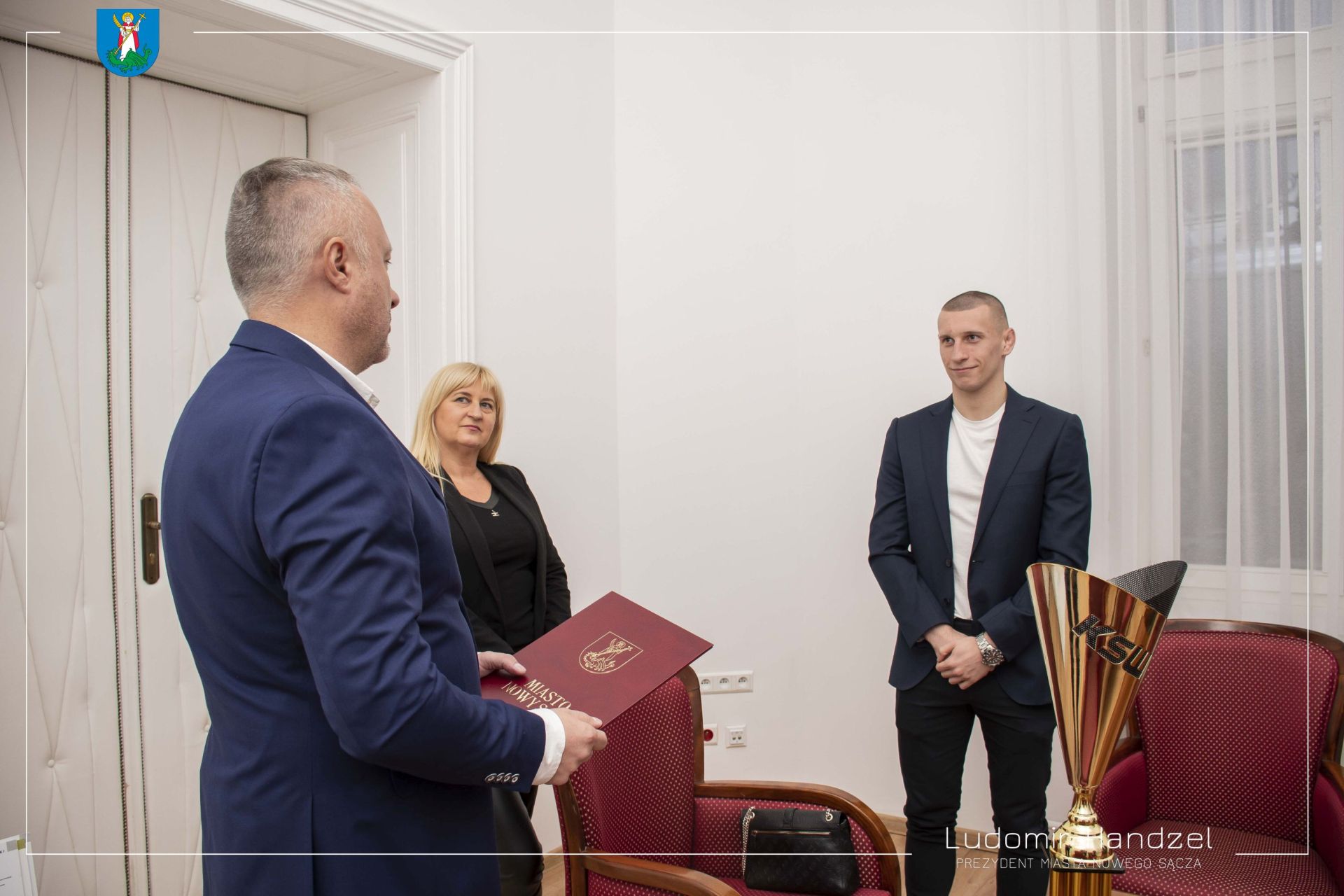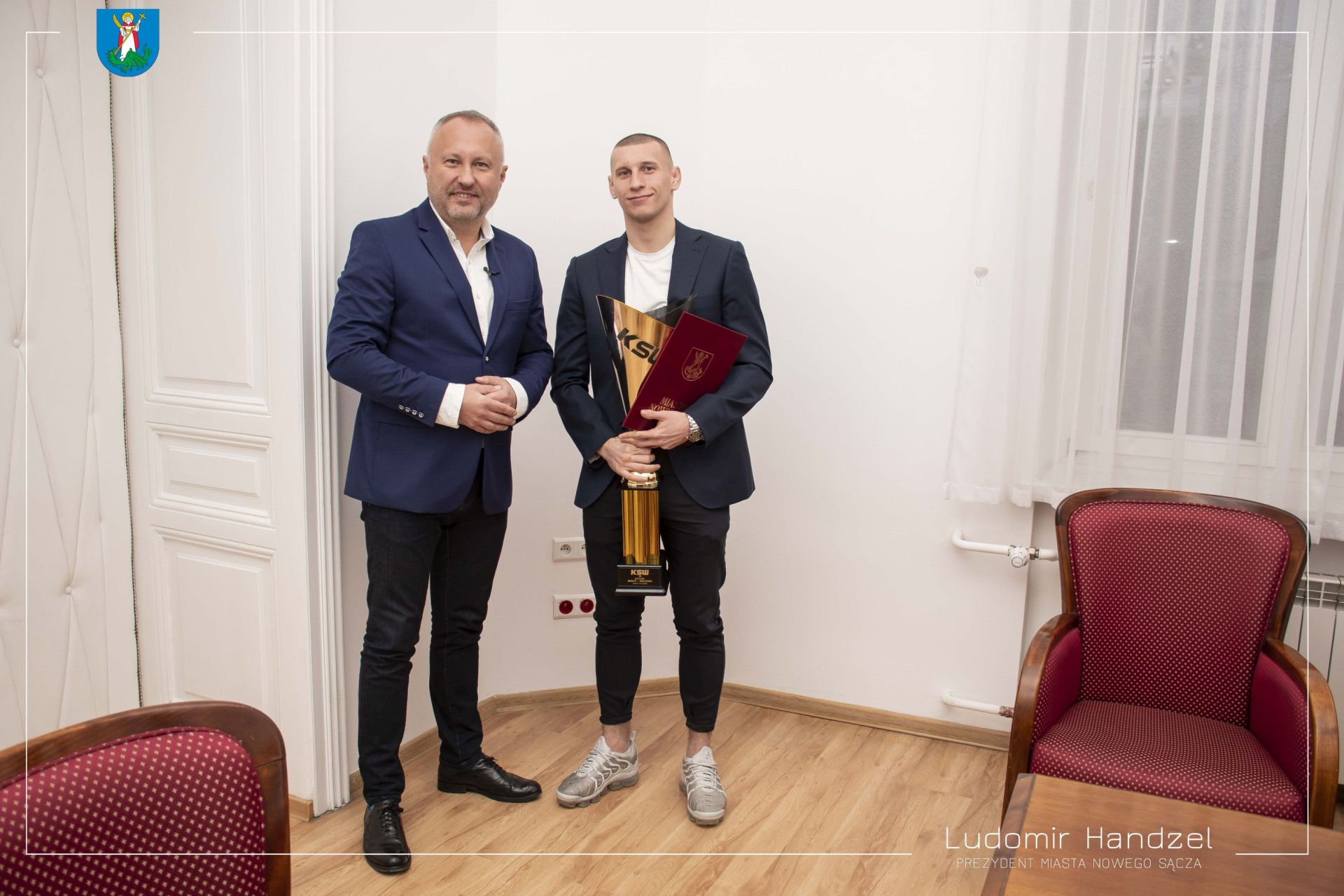 Prezydent Ludomir Handzel złożył gratulację na ręce 22-letniego Sądeczanina Roberta Ruchały, który zwyciężył podczas debiutanckiego występu w Konfrontacji Sztuk Walki na gali KSW 56. w Łodzi.