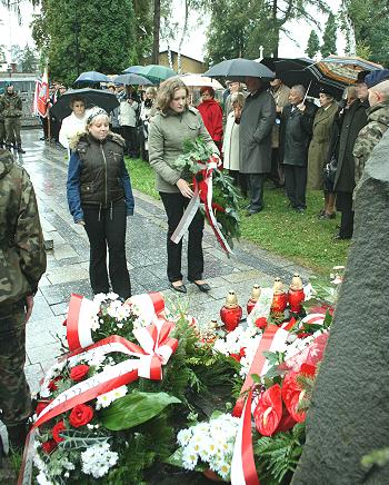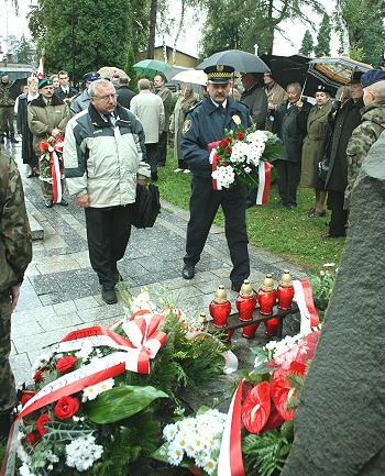 Wiązanki biało-czerwonych kwiatów przy pomniku złożyli m.in. wiceprezydent Nowego Sącza – Jerzy Gwiżdż, wicewojewoda – Stanisław Sorys, członkowie Zarządu Województwa Małopolskiego – Józef Zygmunt i Waldemar Olszyński, radni – Grzegorz Dobosz i Robert Sobol, przedstawiciele Policji, kombatanci i młodzież.