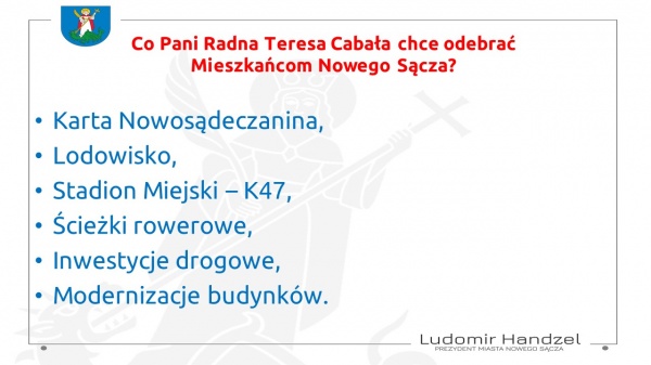 - Zostałem zaskoczony tym wnioskiem. Trudno uwierzyć, że coś takiego można wymyśleć. Wydaje się to całkowicie niezrozumiałe. W skrócie jest to odebranie mieszkańcom Karty Nowosądeczanina, blokady budowy lodowiska, stadionu i wielu innych rzeczy – dodał prezydent.