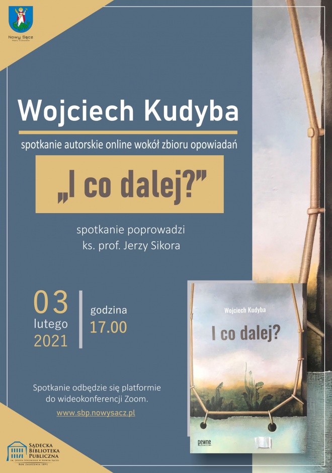 Sądecka Biblioteka Publiczna zaprasza do uczestnictwa w spotkaniu autorskim online z prof. Wojciechem Kudybą wokół jego najnowszego zbioru opowiadań „I co dalej?”. Spotkanie poprowadzi ks. prof. Jerzy Sikora.