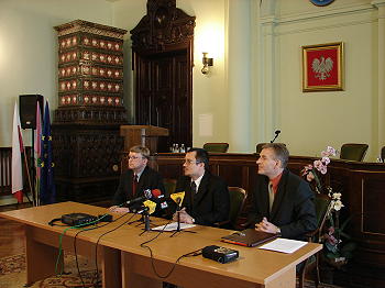 Na zakończenie wizyty wicewojewody Rosteckiego w Nowym Sączu, w sali reprezentacyjnej magistratu odbyła się konferencja prasowa, podczas której goście z Krakowa mówili m.in. o potrzebie szybkiego uruchomienia alarmowego numeru 112, a także na temat funkcjonowania oddziałów Centrum Powiadamiania Ratowniczego.