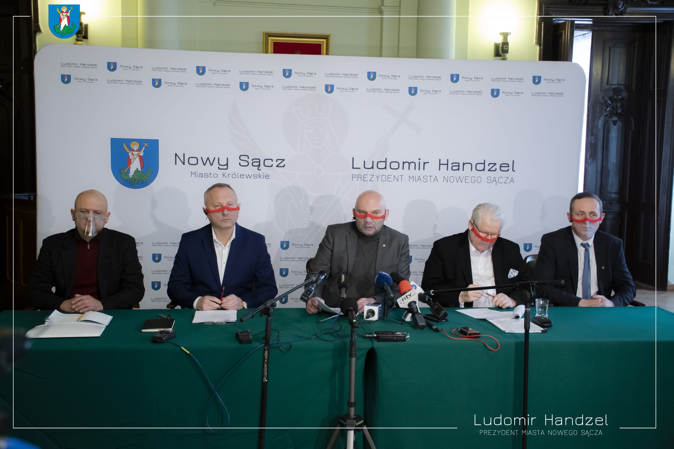 W sali reprezentacyjnej ratusza odbyła się konferencja prasowa dotycząca wczorajszej sesji Rady Miasta. Prezydent wraz z częścią radnych nie mieli możliwości wypowiedzi w trakcie obrad. Prezydent Ludomir Handzel podkreślił, że to kolejny przykład politycznego działania przeciwko dobrym zmianom w Nowym Sączu.