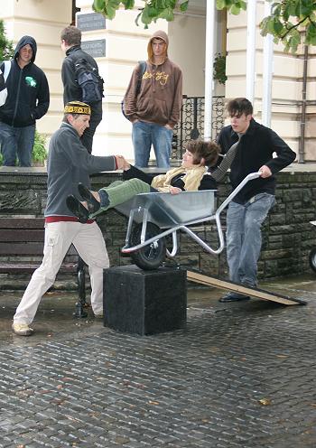Aktorzy biorący udział w happeningu przestrzegali przed siadaniem za kierownicę „na podwójnym gazie”. Aby pokazać, co może stać się - gdy kierowca prowadzi pojazd pod wpływem alkoholu, organizatorzy happeningu użyli taczek, którymi byli wożeni pasażerowie. Kolizje i akrobacje miały uświadomić młodzieży, że nie warto podejmować lekkomyślnych decyzji, mogących zniszczyć przyszłość i marzenia.