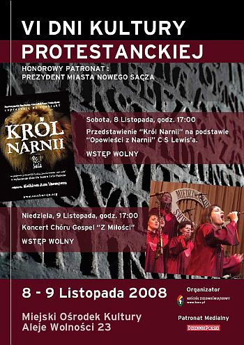 W dniach 8-9 listopada odbędą się „Dni Kultury Protestanckiej”. Impreza, ma na celu prezentowanie i przybliżanie ponad czterystuletniego dorobku protestantyzmu. Reformacja bowiem, to nie tylko wydarzenie religijne, ale także ruch kulturalno-społeczny i jako taki odcisnął swe piętno na najszerzej pojętej kulturze chrześcijańskiej. Kościoły porefomacyjne obecne są w naszym mieście od XVI wieku, i przez te lata wywierały swój wpływ na mieszkańcach Nowego Sącza prowadząc szkoły, szpitale, ochronki dla dzieci, prace charytatywną i diakonijną, ale także przez działalność kulturalną i społeczną. „Dni Kultury Protestanckiej”, na które składają się koncerty, odczyty, przedstawienie teatralne, pokazy tańca, mają przybliżać historyczny dorobek Protestantyzmu. Patronat nad „VI Dniami Kultury Protestanckiej” objął prezydent Ryszard Nowak.