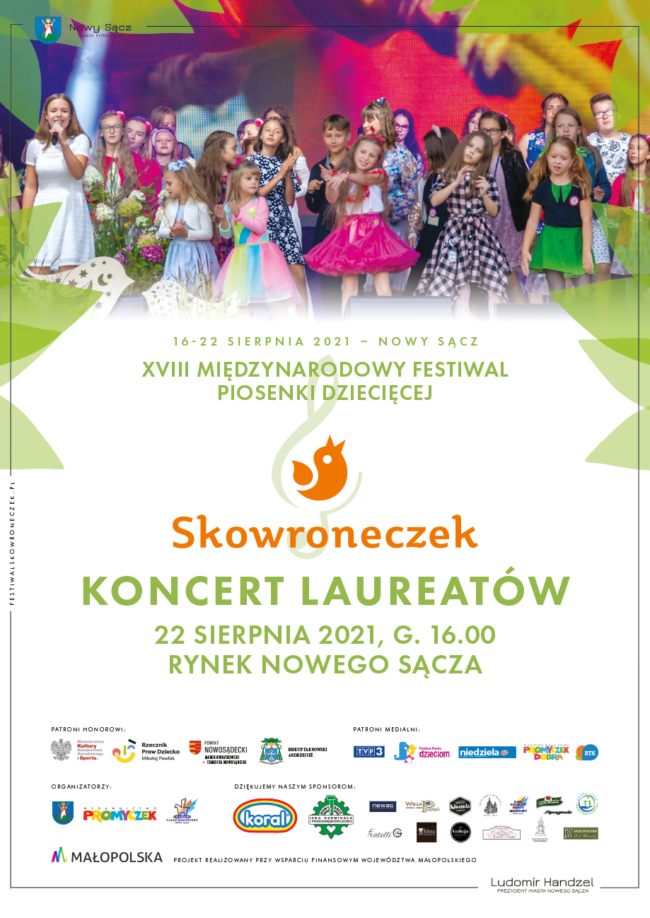 W poniedziałek 16 sierpnia rusza XVIII edycja Międzynarodowego Festiwalu Piosenki Dziecięcej SKOWRONECZEK. W finale wydarzenia weźmie udział w sumie 91 wokalistów, którzy powalczą o główna nagrodę Grand Prix, a także o zwycięstwo w poszczególnych kategoriach wiekowych. Uroczysty koncert laureatów odbędzie się 22 sierpnia na płycie sądeckiego Rynku.
