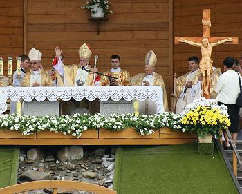 W niedzielne przedpołudnie, na starosądeckich błoniach odbyła się uroczysta eucharystia, sprawowana w ósmą rocznice mszy świętej kanonizacyjnej, której przewodniczył Jan Paweł II, w pamiętnym dniu 16 czerwca 1999 roku. Głównym celebransem niedzielnej uroczystości był ksiądz kardynał Franciszek Macharski, a koncelebrnasami byli – ksiądz biskup Wiktor Skworc – ordynariusz Diecezji Tarnowskiej, ksiądz biskup Władysław Bobowski – biskup pomocniczy, ksiądz prałat Paweł Ptasznik – z polskiej sekcji Sekretariatu Stanu Stolicy Apostolskiej, ksiądz prałat Jan Główczyk – dyrektor Ośrodka Dokumentacji Pontyfikatu Jana Pawła II i Domu Polskiego w Rzymie, a także licznie przybyli na mszę świętą sądeccy duchowni. U stóp papieskiego ołtarza zgromadziły się tłumy wiernych, przybyłych na tą uroczystość z całej Polski. Starosądecki ołtarz jest jedynym w naszym kraju zachowanym w całości oryginalnym ołtarzem papieskim, stojącym w miejscu papieskiej celebry, z czasów pielgrzymek Jana Pawła II do Ojczyzny.