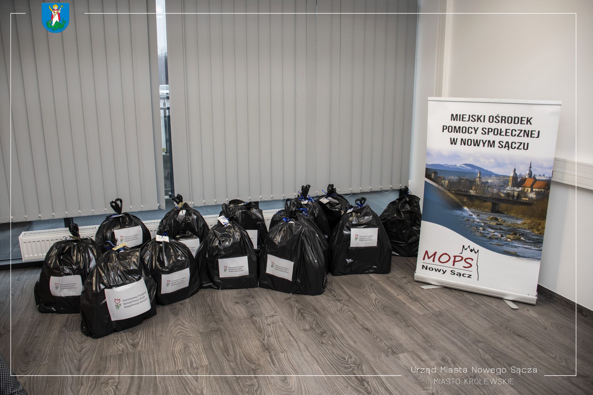 W imieniu prezydenta Miasta Nowego Sącza Ludomira Handzla paczki wręczyła zastępca prezydenta Magdalena Majka wraz Dyrektor Miejskiego Ośrodka Pomocy Społecznej w Nowym Sączu Luizą Piątkiewicz.