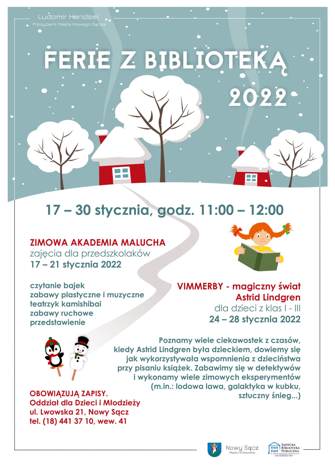 Sądecka Biblioteka Publiczna, serdecznie zaprasza najmłodszych na spotkania w czasie ferii zimowych! Na dzieci czeka moc niespodzianek (nie tylko czytelniczych).